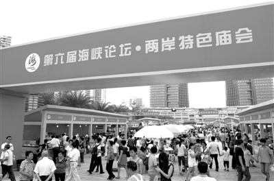论坛期间举办的两岸特色庙会人头攒动,非常热闹。 本报记者 廉 丹摄