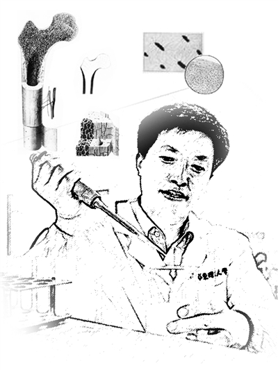 “人工骨”涉及生物、化学、材料和医学等多个学科。我就从材料的筛选入手,一步步接近目标。记得那年正值盛夏,我和其他研究人员在热得像大蒸笼似的实验室里,每天工作长达十六个小时,衣服湿了又干,干了又湿。
