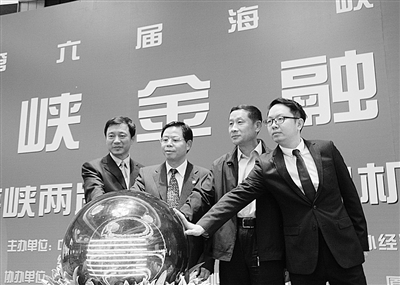 海峡金融论坛举行了中经商品交易中心启动仪式。图为福建厦门市委常委、常务副市长林国耀(左二),《经济日报》副总编辑林跃然(右二)等在启动仪式上。