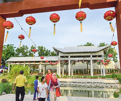 “2014年马来西亚普特拉贾亚花卉节”日前在普特拉贾亚举行,共有37名来自中国、丹麦、法国等国的园艺师参与设计。图为民众在马来西亚普特拉贾亚花卉节上游览兴建中的马中友好公园。 新华社发