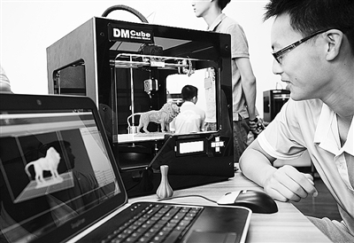 6月16日,学生在观看用3D打印机设计打印出的成品。当日,北京市中小学首个3D打印实验室落户北京二中亦庄学校。 新华社记者 杨 光摄