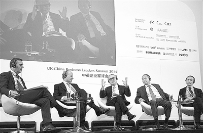 日前在伦敦举办的中英企业家峰会上,中英企业家进行认真交流。