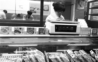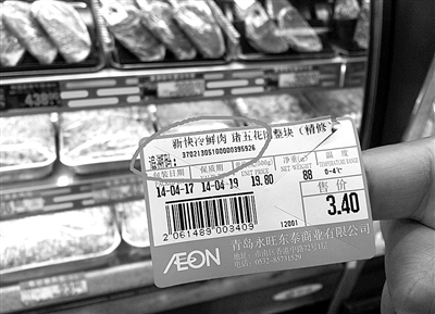 青岛市自主研制了溯源式电子秤,称重的同时也能打出溯源码。永旺超市肉品柜台使用的就是这种秤。