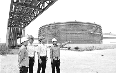 浙江舟山银监分局积极引领辖内银行业金融机构对接舟山群岛新区建设。图为建设银行舟山分行信贷人员实地了解天禄投资集团能源油品储运项目运营情况。