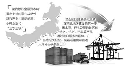 6月12日,天津渤海银行正式入驻内蒙古,成立呼和浩特分行。这是渤海银行在少数民族地区开设的第一家分行,也是天津、内蒙古提升合作领域的又一重大举措。成立于2005年的渤海银行曾在天津滨海新区建设中发挥了重要作用。按照渤海银行的发展规划,入驻内蒙古后,将以呼和浩特为依托,以呼包鄂为中心,辐射内蒙古全区。据渤海银行负责人介绍,渤海银行的金融资本将重点支持内蒙古战略性新兴产业、清洁能源、小微企业和“三农三牧”,这些产业既是内蒙古经济转型发展的重点领域,也是天津内蒙古打造环渤海经济圈物流运输走廊的经济基础。