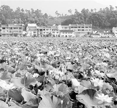 盛夏将至,有着“中国莲花第一村”美誉的江西省广昌县姚西村里,田野间万亩白莲竞相绽放,吸引大批省内外游客纷至沓来。近年来,该县依托良好的生态环境及9万亩白莲产业优势,投入资金改善景区人居和旅游基础设施,成功打造了莲花生态旅游名片。 本报记者 刘 兴摄