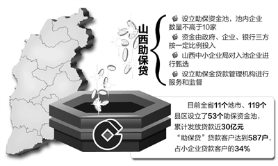 从2012年开始,山西省中小企业局与中国建设银行山西省分行联手推出了“助保贷”融资模式,设立“助保资金池”,降低企业融资门槛和成本,探索解决山西省中小企业融资难题。“每个‘助保资金池’内企业数量不高于10家,由政府、企业、银行三方按照一定比例出资,投入‘助保资金池’。如果企业未能及时偿还贷款,则由池内资金代偿。”山西省中小企业局融资财务处处长文渊介绍说。