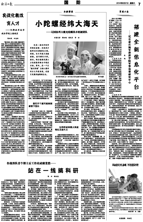 别人都说,你们真是太傻了,自己研究的成果交给别人使用。该院秦石乔院长却说:“国家利益为上,其他都是浮云。让科研成果最大限度转化为战斗力,是我们最大的心愿。”
