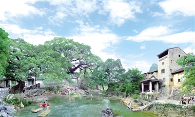 记者到达广西昭平县黄姚古镇时,正下着一场绵绵细雨。古树抽出了新芽,溪水欢快地流淌着。