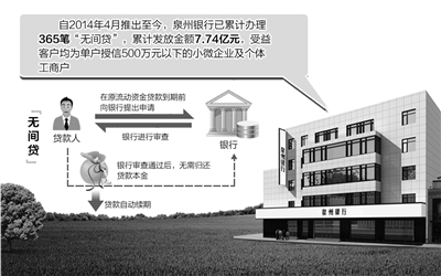 数据显示,自2013年4月推出至今,泉州银行已累计办理365笔“无间贷”,累计发放金额7.74亿元,受益客户均为单户授信500万元以下的小微企业及个体工商户。