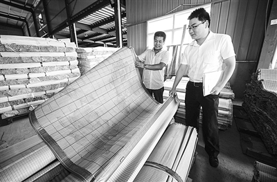 图为银行工作人员(右)正在和企业主一起对抵押的竹制品进行核对和清点。 新华社记者 徐 昱摄