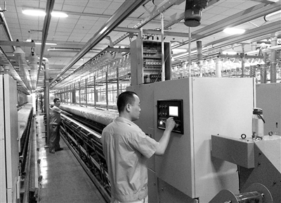 咸阳纺织集团现已落户工业园。在集团一分厂新建成的车间里,记者看到一台台崭新的机器已安装到位。“在老厂,我们的工人要一手拔纱,一手插管,现在则由机器全自动化操作。”陕棉八厂总工程师燕群社指着一台欧瑞康牌细纱机说,“这些设备大部分从德国进口,将在未来10年保持国际国内一流水平。”