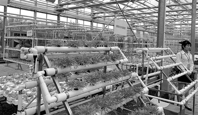 在杨凌现代农业示范园区无土栽培馆,记者看到,盆景绿植整齐地摆在墙上,绿油油的生菜飘在水中。“这些均采用无土栽培技术,使用基质和营养液栽培,长在水里的芹菜仅需要45天左右就能长成。”讲解员指着一片芹菜苗说。据了解,该馆利用现代化的育苗设施和国内外最先进的现代育苗技术,将现代生物技术、环境调控技术、施肥灌溉技术、信息管理技术贯穿种苗生产全过程。