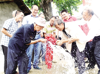 “通水啰……”6月22日上午,四川广元市利州区荣山镇大山村口老柿子树下,看着哗哗流出的自来水,全村老少欢呼雀跃。