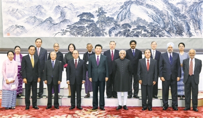 李克强主持大会 张德江俞正声等与缅甸总统吴登盛、印度副总统安萨里出席