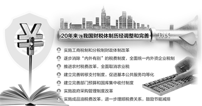 20年来,我国财税体制经过了多次调整和完善:全面统一内外资企业税制,让各类企业站在同一起跑线上,促进市场公平竞争;推进农村税费改革,全面取消农业税,着力减轻农民负担;建立完善转移支付制度,促进基本公共服务均等化;建立完善部门预算和国库集中收付制度,规范财政收支;实施政府采购管理制度改革,提高财政支出效益;实施成品油税费改革,进一步理顺税费关系,鼓励节能减排,建立科学发展的机制等。