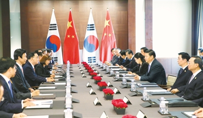 习近平表示,中韩关系经过20多年的良好发展,进入全面大发展的新时期,给彼此带来了实实在在的利益,并日益超出双边范畴,为促进本地区和平、稳定、繁荣发挥了重要作用。