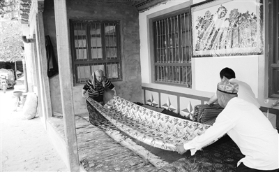 在吾斯塘乌其村,村民伊拉木120多平方米的新房里,铺着鲜艳的地毯,挂着淡黄色的窗帘,客厅还悬吊着精致的灯饰。