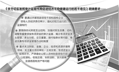 日前,审计署审计长刘家义接受了《经济日报》记者专访,就审计署近日出台的《关于切实发挥审计监督作用促进经济平稳健康运行的若干意见》进行解读。刘家义认为,审计监督要聚焦政策落实情况,也要关注影响宏观调控的体制机制性问题,不断健全宏观调控体系。只有发挥好审计工作“免疫系统”的功能,才能在“三期叠加”阶段更好地促进经济平稳健康发展——
