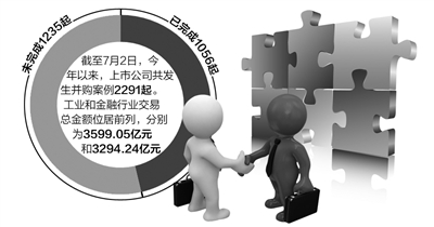 据Wind数据统计显示,截至7月6日,今年上市公司发生并购案例2291起,完成1056起,未完成1235起。工业和金融行业交易总金额位居前列。不过,企业并购重组是把双刃剑,多措并举维护并购各方合法利益势在必行。