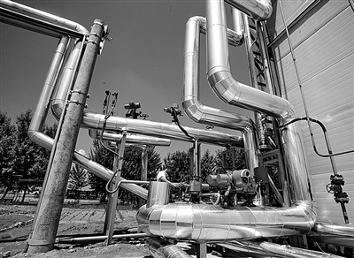 在河北省宣化县,工人在北京兆阳光热技术有限公司建设的光热发电站工作。近日,北京兆阳光热技术有限公司拥有完全自主知识产权的光热发电示范电站在河北省宣化县建成。据介绍,该项目于2013年10月开工建设,目前建有两个标准商品级400米聚光回路,镜场面积7500平方米。