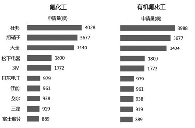 图③:全球氟化工领域专利排名前10的申请人。
