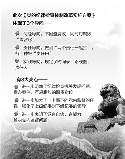 记者:此次《党的纪律检查体制改革实施方案》有哪些亮点?