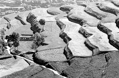 在甘肃省定西市境内312国道的两侧,原来水土流失严重的黄土丘陵沟壑区,如今片片翠绿覆盖,层层梯田环绕村庄,宛如美丽画卷。新华社记者 王 颂摄
