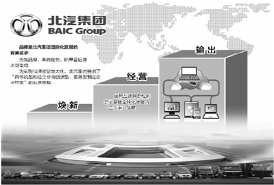 “品牌是北汽集团国际化发展的首要追求。”北汽集团董事长徐和谊表示,“国际化发展的理想顺序是,先做品牌,再做服务,最后销量水到渠成。”为此,北汽集团提出了“由传统型制造企业向创新型、服务型制造企业转变”的发展思路,并运用互联网思维制定北汽集团品牌全球化发展的“焕新、经营、输出”的“三步走”战略。