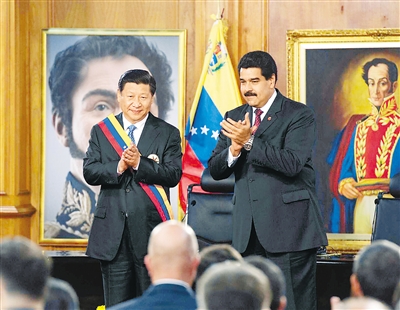 习近平在致辞中指出,马杜罗总统授予我“解放者”勋章,体现了马杜罗总统和委内瑞拉政府对中委关系的高度重视,体现了委内瑞拉人民对中国人民的友好感情。委内瑞拉前总统查韦斯曾经说过,中委友谊像长城一样牢不可破、坚不可摧。中委友谊也必定像南美洲的奥里诺科河一样绵延不绝、生生不息。中方对两国全面战略伙伴关系发展前景充满信心,愿意同委方一道努力,永远做相互信赖的好朋友和互利共赢的好伙伴,推动两国关系不断迈上新台阶。