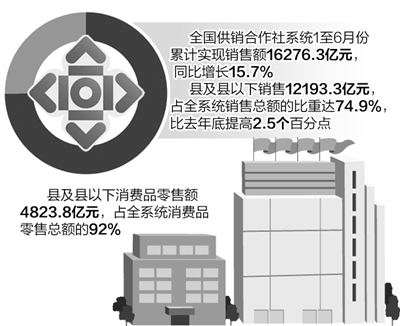 本报讯 记者刘惠兰 杜芳报道:据中华全国供销合作总社日前发布的数据显示,全国供销合作社系统1月至6月份主要经济指标保持增长,累计实现销售额16276.3亿元,同比增长15.7%,较去年同期回落9.3个百分点。其中6月份全系统销售额为3484.8亿元,增长15.9%,与前几个月相比增幅回升势头明显。