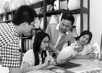 进入暑假后,许多大学生来到淄博市淄川区昆仑镇,向山东省工艺美术大师、山东省陶瓷艺术大师李秋峰学习刻瓷技艺。淄博刻瓷技艺现已列入山东省级非物质文化遗产。 闫盛霆摄