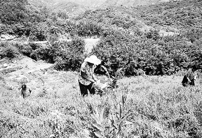 7月25日,河北滦平县两间房乡农民采摘黄芪叶子。近年来,河北省承德市发挥地理及气候优势,全力打造“药园子”。目前,中药材产业已经成为该市农业富民增收的特色主导产业。 新华社记者 金良快摄