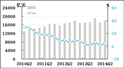 经初步季节调整,二季度末装备制造业产成品资金为1.2万亿元,同比增长15.7%,增速比上季度上升6.1个百分点,已连续三个季度呈上升趋势。