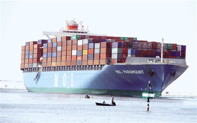 上图 8月10日,在埃及首都开罗北部的港口城市伊斯梅利亚,一艘运货船通过苏伊士运河。