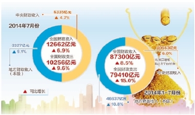 本报北京8月11日讯 记者崔文苑报道:财政部11日发布数据显示,7月份全国财政收入12662亿元,同比增长6.9%。其中税收收入11132亿元,同比增长9.4%。下半年开局,税收收入增幅明显回升,显示经济景气度上升。