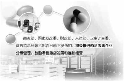 三要鼓励零售药店发展和连锁经营。结合深化医改和医药分开试点工作,提高零售药店在药品终端市场上的销售比重,清理妨碍零售连锁药店发展的政策性障碍,缩短行政审批所需时间;依法查处药品生产流通企业与医疗机构在药品销售中存在的各种价格垄断行为;在“加快发展药品连锁经营”的同时,加强行业准入退出管理与行业规划的衔接,鼓励企业开展兼并重组,做好新版《药品经营质量管理规范》的贯彻执行;将符合资质条件的零售药店及时纳入医保定点范围,逐步扩大医保定点零售药店覆盖范围。