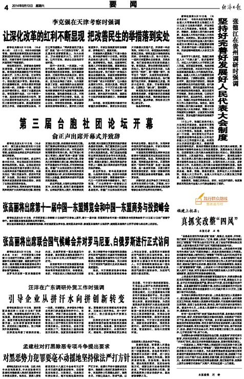 张高丽将出席联合国气候峰会并对罗马尼亚、白俄罗斯进行正式访问