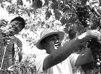9月9日,游客在河北省迁安市农民刘开所的采摘园内自助采摘,体验收获的乐趣。当前,迁安市大崔庄镇白羊峪长城风景区内核桃、板栗、葡萄、大枣等进入收获期,当地观光园纷纷推出各种旅游项目,吸引了唐山、秦皇岛、天津等地游客前来观光采摘。 李 瑛摄