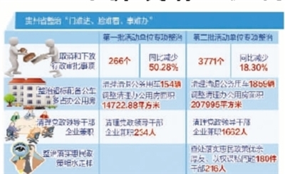 据统计,贵州省在第二批群众路线教育实践活动中取消和下放行政审批事项3771个,同比减少18.3%;查处查办“吃拿卡要”、“庸懒散拖”1393件、干部2410人;查处查办在项目审批、专项转移支付资金分配等工作中暗箱操作、权力寻租58件、干部73人。全省应公开和简化办事程序的单位7502家,公开和简化比例为75.6%;查处办事刁难群众典型案例42件、干部49人。 (宗 文)