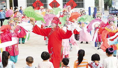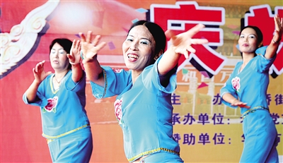 | 9月29日,四川华蓥市古桥办事处的老人为庆祝新中国成立65周年组织开展文艺汇演,表达心中的祝福。 |