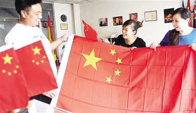 | 9月29日,北京京工红旗厂门市部,顾客在选购国旗。国庆前夕,许多单位、个人纷纷前来购买国旗。 |