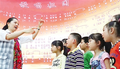 | 9月29日,江苏无锡荡口古镇王莘故居,小朋友在老师带领下齐唱王莘老人创作的《歌唱祖国》。 |