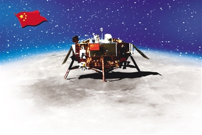 我国圆满完成的嫦娥三号任务中有一个令人激动的画面:在布满砾石的灰黑色月面上,“玉兔号”月球车胸前的五星红旗光彩万丈、鲜艳夺目,这是第一面登上月球的五星红旗,凝聚着中国人的自豪和骄傲。