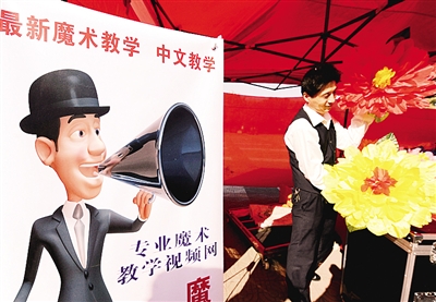 10月15日,一位从事魔术教育培训的魔术师在向群众介绍魔术道具。当日,中国·宝丰第六届魔术文化节云集了数十家魔术道具展销商。