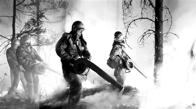 火场温度实在太高了,灭火风机烤得烫手,鼻子被烤得冒血,滴答滴答往下滴,防火鞋底被烤化了,防护镜也慢慢地变软,有的战友昏倒在了火线上。一棵过火大树突然倒下,生生将战士秦大军身旁的水箱砸成碎片,大家都惊呆了,而秦大军却说:“不怕,就算光荣了,我还有个弟弟孝敬老人。”