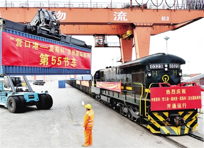 10月18日,国内第一列经满洲里口岸过境,直达莫斯科的国际集装箱班列在辽宁营口港开通运营。该班列开通后,将推进“一带一路”建设,密切中国新丝绸之路经济带与俄罗斯跨欧亚经济带的对接。