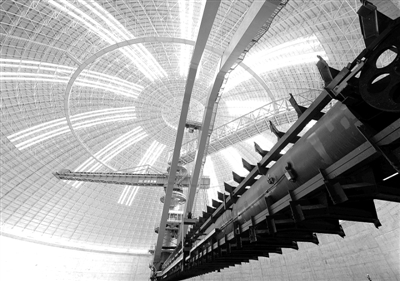 10月23日,位于陕西榆林的兖矿榆林100万吨/年煤间接制油示范项目,进入设备安装调试阶段,该项目是国家“十二五”煤炭深加工示范项目,具有自主知识产权的核心技术,在国内外处于领先水平,预计明年5月正式投产运行。图为大型储煤仓的设备正在调试中。