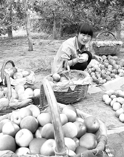 苹果熟了,山西吉县的苹果专业户刘守义在山上的果园里忙得不可开交。大人们把红苹果摘下,运到宽敞的平地,由两个孩子负责分拣。在成熟的鲜果堆里,姐姐的脸蛋也被映衬得红扑扑的。