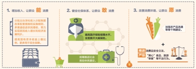 针对群众是不是“敢”消费,“愿”消费问题,会议指出,要健全社保体系,让群众“敢”消费。提高医疗保险保障水平,全面推开大病保险。统筹推进社会救助体系建设。同时,要改善消费环境,让群众“愿”消费。加强农产品流通等骨干网建设。推进消费品安全立法,严惩“黑心”食品、旅游“宰客”等不法行为。